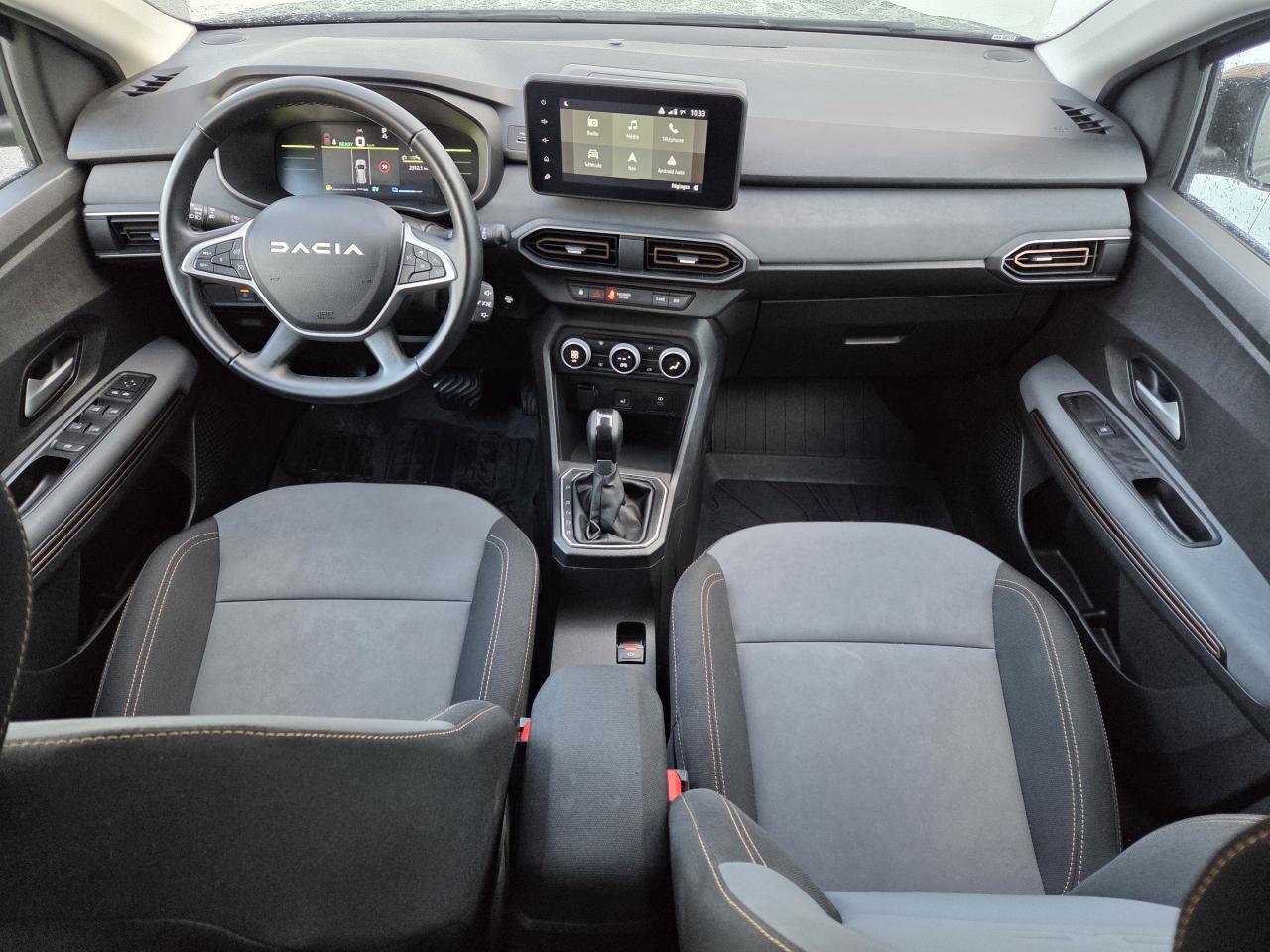 1 port usb-c pour l?arrièreAide au maintien dans la voieAide au stationnement arrièreAlerte de survitesse avec reconnaissance des panneaux de signalisationAllumage automatique des essuie-glacesAllumage/extinction automatique des feuxAntenne de type requin couleur noir brillantBanquette arrière rabattable 1/3 - 2/3 (assise et dossier)Barres de toit longitudinales modulairesCalandre noire logo dacia blancCaméra de reculCarte mains-libresCentre des aérateurs brun cuivréClimatisation automatiqueCondamnation des portes électriques condamnation automatique en roulant incluseConsole centrale haute avec accoudoir central et espace de rangementContrôle de pression des pneus ( tpms )Contrôle dynamique de trajectoire (esp) avec aide au démarrage en côteDesign outdoor spécifique avec protections de porteEco modeEnjoliveur brun cuivré sur les panneaux des portes avantExtended gripFeux de jour automatiques à ledFrein de parking électriqueJantes en aluminium 16? mahalia noiresLève-vitre impulsionnel conducteur (avec fonction antipincement)Lève-vitres arrière électriquesLève-vitres avant électriques conducteur et passagerLimiteur de vitesseMedia display 4 haut-parleurs<br>port usb avant (usb-a)<br>prise usb-c<br>radio numérique dab<br>smartphone réplication<br>système multimédia avec écran couleur tactile 8'<br>téléphonie bluetooth avec commandesOrdinateur de bord : distance parcourue vitesse moyenne autonomie consommation moyennePrises 12 v à l'avant et à l'arrièreProjecteurs antibrouillardRégulateur de vitesseRétroviseurs extérieurs à réglage électriqueRétroviseurs extérieurs brun cuivréRevêtement en tep micro cloud sur la planche de bord et les accoudoirs des portes avantSellerie mixte tep micro cloud lavable avec surpiqûres couleur brun cuivré et embossageSignature lumineuse à ledSystème d'alerte de changement de voieSystème de fixation isofix pour siège enfant aux places latérales du rang 2Tablettes aviation au dos des sièges de la 1ère rangéeVolant réglable en hauteur et en profondeurVolant soft feel et pièce déco gris acier