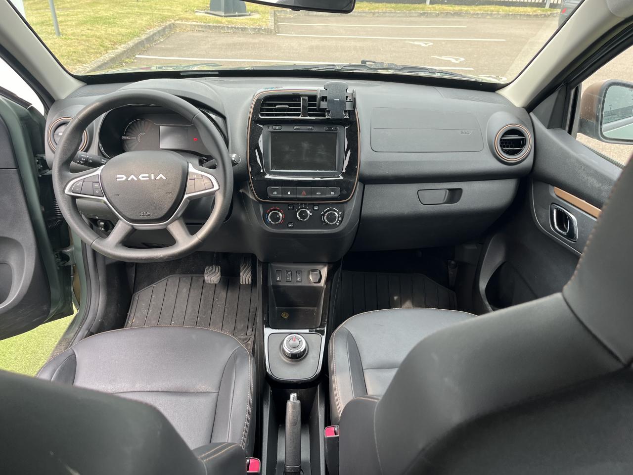Abs (antiblocage de roues)Aide au démarrage en côte (hsa)Aide au parking arrière avec caméra de reculAirbag frontal conducteurAirbag frontal passager déconnectableAirbags latéraux épaules et rideauxAppel d'urgence - ecallAssistance au freinage d'urgenceBanquette arrière rabattable 1/1Bouton de frein de parking chrome brillantCâble de recharge domestique mode 2 (10a)Câble de recharge mode 2 flexichargerCalandre blancheCapteur de pression des pneumatiquesChrome brillant autour des boutons de contrôle climatisationClignotants intégrés aux rétroviseurs extérieursClimatisation manuelleCommande d'ouverture de porte avant et arrière chrome brillantCondamnation automatique des portes en roulantDécoration de panneau de porte brun cuivréDésembuage arrièreDirection assistée électriqueEntourage d'aérations de console centrale motif brun cuivréEssuie-glace av et arFermeture centralisée à distanceFermeture des portes à cléFeux arrière avec signature lumineuseFeux de jour automatiques à ledFreinage actif d?urgence (aebs interurbain)Inserts noir brillant sur les accoudoirs des portes avant et arrière et sur la consoleKit de gonflageLève-vitres avant et arrière électriquesLimiteur de vitesseMedia nav : navigation radio dab réplication smartphone via un câble usb compatible avec apple carplay et android auto bluetooth 2 haut-parleurs écran tactile 7? prises usb et auxiliaire. mise à jour gratuite de la cartographie pendant 3 ansMolette rotative rnd chrome brillantOrdinateur de bord tft 3 5''Peinture blanc kaolinPoches aumônière au dos des sièges avantPoignées de portes couleur carrosseriePoignées de portes intérieures chroméesPrise 12vProgramme de stabilité électronique (esp)Réservoir lave-glace (3 litres)Rétroviseurs extérieurs brun cuivréRétroviseurs extérieurs réglables électriquementRail de toit décoratif motif brun cuivréRoue flexwheel 14? diamantée noirSellerie tep avec surpiqûres brun cuivréServices connectés depuis l?application my dacia : état de charge préconditionnement de l?habitacle géolocalisation arrêt/départ de chargeSignature lumineuse à ledStripping latéral sous rétroviseur motif noir et brun cuivréStripping latéral sur portière noir avec motifs topographiquesSystème de fixation isofix aux places arrièreVolant avec insert chrome brillant