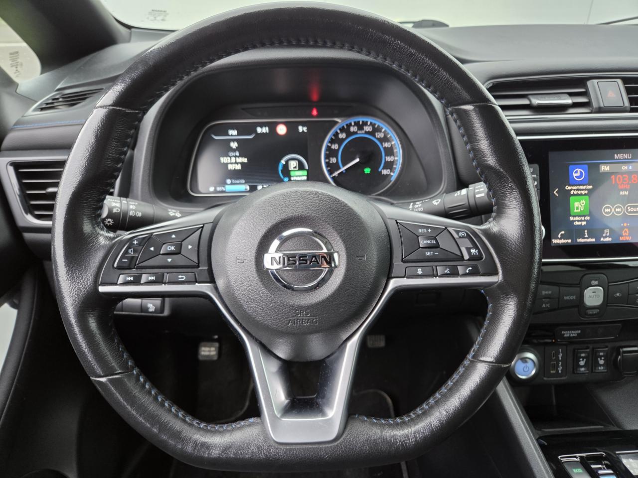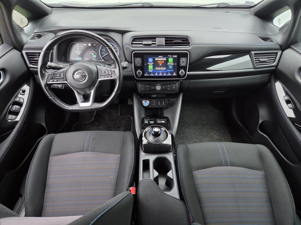 6 airbags (frontaux latéraux et rideaux)6 haut-parleursAccès internet sans fil wi-fiAccoudoir centralAlerte et prévention de franchissement de ligneAllumage automatique des pharesCâble 32a de 6 m (recharge sur borne publique ou wallbox 7kw t2 en 7h30 sur 40 kwh ou 11h30 sur 62 kwh)Câble de 6 m (recharge sur prise domestique 230v en 21h sur batterie 40 kwh ou 32h sur batterie 62kwhChargeur embarqué 6 6 kw pour se recharger sur une borne ou wallbox 32aClignotants led intégrés dans les rétroviseursClimatisation automatiqueCombiné d'instrumentation avec écran hd tft 7' couleurCommandes au volantDéclenchement de la recharge à distanceEligible au bonus ecologiqueEssuie-glaces avant à déclenchement automatiqueFermeture et ouverture centralisées des portes à distanceFeux arrière à ledFeux de route intelligentsFeux diurnes à led avec signature lumineuseFixations isofix pour siège passager avant et places latérales arrièreFm/am/rds/mp3 audioGps avec ecran couleurLimiteur de vitesseMode de conduite ecoNissan avm - vision intelligente à 360° & radars de stationnement avant et arrièreNissanconnect 8'Nissanconnect ev : service de télématique permettant de se connecter à distance au véhicule depuis un smartphone ou un ordinateurPack confortPack lookPhares halogènes avec signature ledPrise 12v sur la console centralePrise auxiliaire jack 3.5'Prises usb avant et arrièreProjecteurs antibrouillard avantRégulateur de vitesse adaptatif intelligent (i-acc)Rétroviseur intérieur électrochromeRétroviseurs extérieurs rabattables automatiquementRadio dabReconnaissance des panneaux de signalisationSellerie mixte tep / tissu noir ou beigeSurveillance des angles morts intelligentSystème antiblocage des freins (abs)Système d'ouverture et de démarrage sans clé 'intelligent key'Système de contrôle de la pression des pneus (tpms)Système mains libres bluetoothTechnologie e-pedalVitres électriques avant et arrièreVolant en cuir