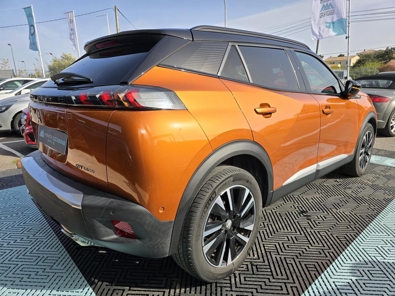 Afu (assistance au freinage d'urgence) ref (répartiteur electronique de freinage)Air conditionné automatique mono-zoneAllumage automatique des feux de croisementAssistance au démarrage en côte (hill assist)Banquette arrière 1/3-2/3 rabattableDémarrage mains libres avec 2 télécommandes 3 boutons mains libresEclairage d'accueil et d'accompagnementEclairage polyambient 8 couleursFeux diurnes à led sous projecteursFonction bluetooth et mirror screen (apple carplay/ android auto/ mirrorlink)Gestion automatique des feux de croisement / feux de routeJantes alliage 17'' salamanca diamantées bi-tons noir onyx et vernis brillant cabochons et vis noir onyxKatana noir mat avec insert noir brillant et marquage gt line brillantNavigation 3d connectée avec reconnaissance vocale écran tactile capacitif 10' hd 2 prises usb console avant (une data type a et une de recharge type c) 2 sur console haute (2 recharges type a)Pédalier sport en aluminiumPack safety plus freinage d'urgence automatique avec vidéo & radar<br>pack safetyPeinture métallisée orange fusionPeugeot i-cockpit 3d avec combiné tête haute numérique 3d 10''Projecteurs antibrouillard led avec fonction corneringProjecteurs peugeot full led technology avec signature 3 griffes indicateurs de direction à ledRégulateur et limiteur de vitesseRétroviseurs extérieurs dégivrants à réglage et rabattement électriques éclairage de seuilSellerie tri matière tissu / tep capy surpiqûres vert adamiteToit black diamondVisio park 1 aide graphique et sonore au stationnement avant aide graphique et sonore au stationnement avant<br>visio park 1