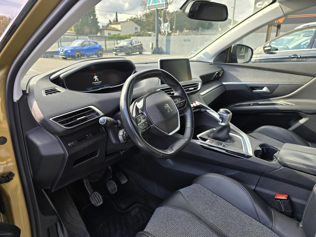 Accès et démarrage mains-libresAccoudoir central avant à ouverture papillon avec compartiment de rangement éclairé et réfrigérableAide graphique et sonore au stationnement arrièreAir conditionné automatique bi-zone avec aérateurs aux places arrièreBanquette rabattable 1/3 - 2/3 (modularité 'magic flat' et commandes dans le coffre) avec accoudoir et trappe à skisContrôle dynamique de stabilité cds avec antipatinage électronique asrDécors de planche de bord et panneaux de portes en maille 'brumeo'Enjoliveurs en inox sur les protecteurs de bas de portesFixations pour trois sièges enfants suivant norme isofix aux places passager avant et latérales arrièreFonction mirror screenJantes alliage 18' 'detroit' bi-ton diamantéesLève-vitres électriques avant et arrière séquentiels et antipincementPack city 1Pack eclairage d'ambiancePack safety plusPack visibilitéPeugeot i-cockpit combiné tête haute numérique reconfigurable écran tactile capacitif 8' et volant compact multi-fonctionsPlancher de coffre deux positionsPrise usbPrises 12v (x 3)Projecteurs antibrouillard halogènes avec enjoliveurs chromésProjecteurs halogènes à l?avant avec feux diurnes à led intégrés dans le bloc optiqueRégulateur et limiteur de vitesseRétroviseurs extérieur électriques et dégivrantsRétroviseurs extérieurs rabattables électriquement avec éclairage d'approche à ledRadio 6 hp bi-tuner compatible mp3 et connectivité bluetooth (audio streaming kit mains libres) avec commandes au volant écran tactile capacitif 8'Reconnaissance des panneaux de vitesse et préconisationSellerie tep & tissu 'piedimonte' ou 'evron'Siège conducteur réglage en hauteurSiège passager à réglage manuel en hauteurToggle switches' chromés (touches 'piano' d'activation des fonctions de l'écran tactile)Vitres latérales et lunette arrière surteintées